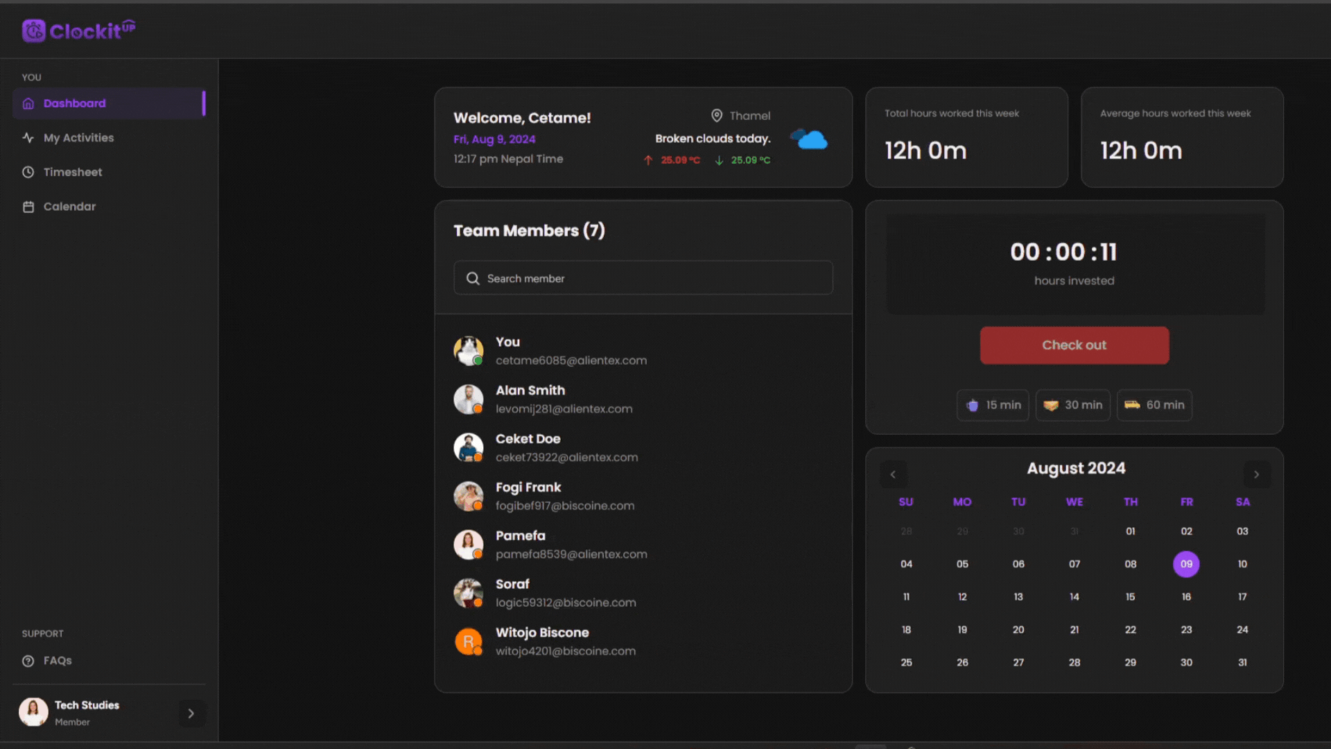 Efficiently managing your breaks is essential for maintaining productivity and avoiding burnout. ClockitUp makes it simple to track and manage your breaks right from your dashboard. Follow these steps to seamlessly manage your breaks using ClockitUp’ S user-friendly interface.
